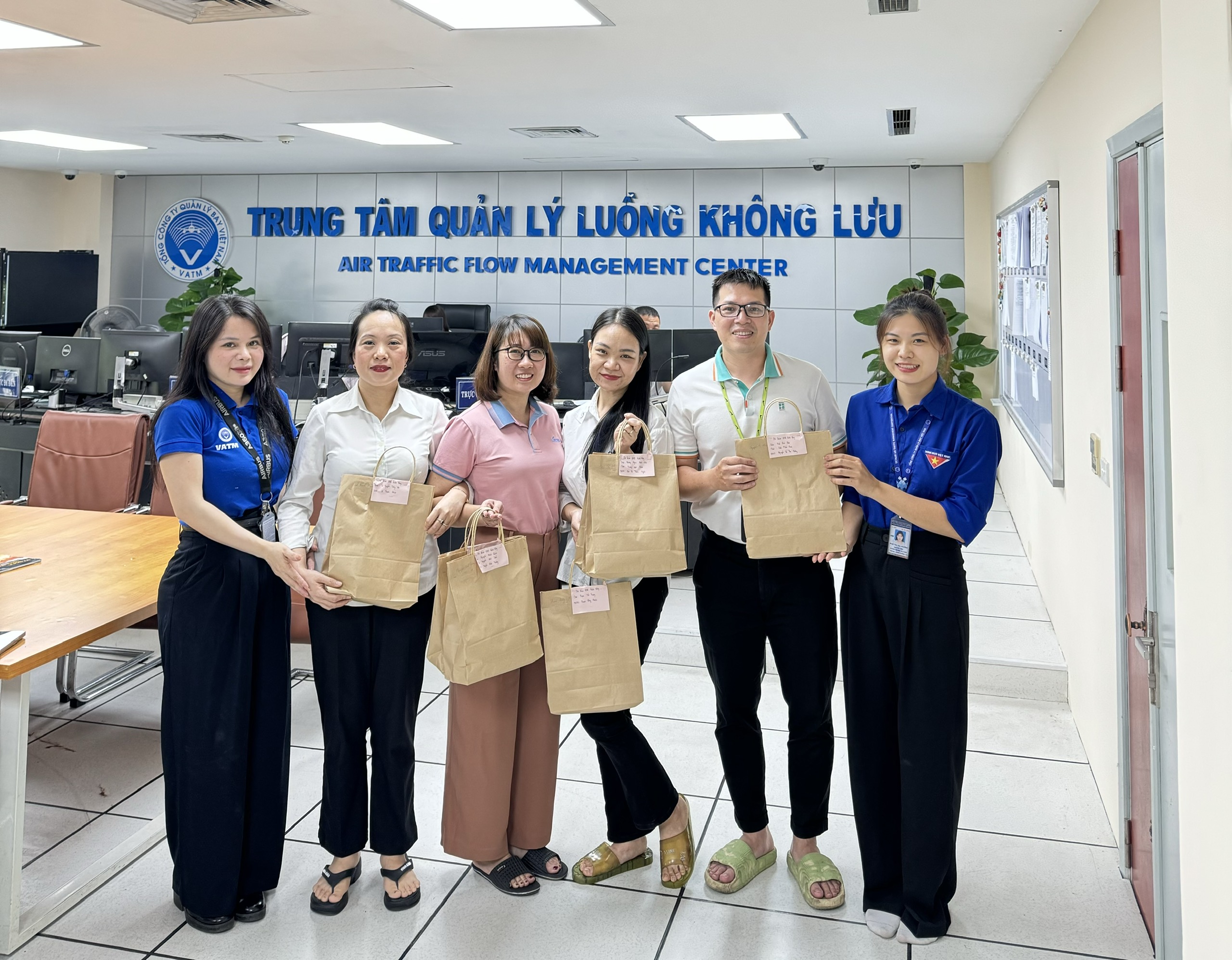 Đại diện Chi đoàn ĐHB trao quà tới phụ huynh các con Phòng Nghiệp vụ ATFM