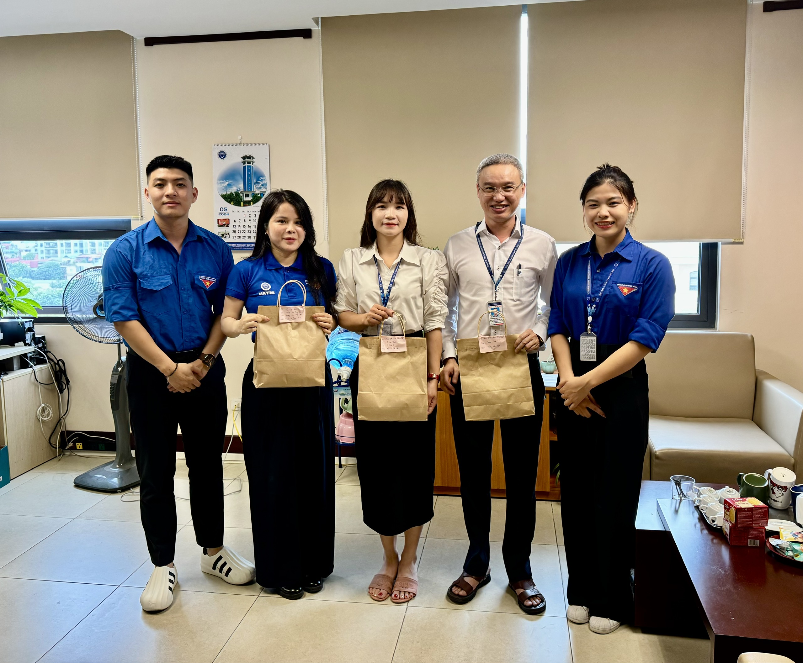 Đại diện Chi đoàn ĐHB trao quà tới phụ huynh các con Phòng An toàn chất lượng