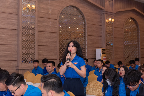 Đoàn viên Lâm Thị Kim Huyền, Phó Bí thư Đoàn cơ sở Trung Tâm QLLKL tham gia đặt câu hỏi tại Chương trình