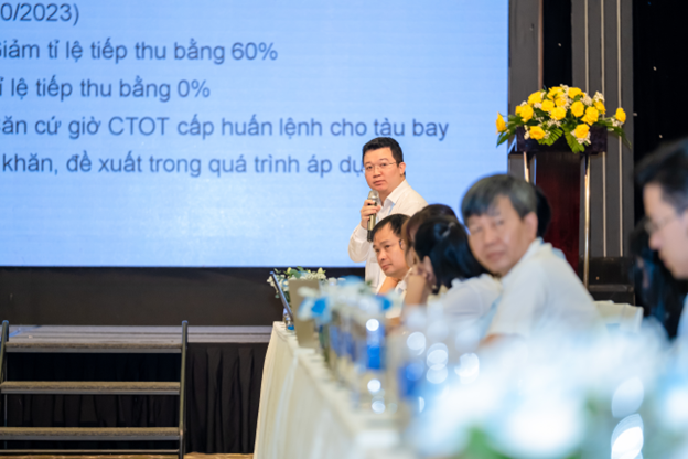 Mở đầu Hội thảo sáng ngày 20/10/2023, Ông Phạm Xuân Thanh đại diện Trung tâm Quản lý luồng không lưu đã giới thiệu về lộ trình triển khai Kế hoạch thử nghiệm ATFM tại các sân bay của Việt Nam, việc triển khai công cụ ATFM tích hợp tại ATFM Portal theo Phương thức khai thác ATFM đa điểm nút của khu vực, đáp ứng việc tính toán CTOT trong điều kiện thời tiết bất lợi tại các sân bay Nội Bài và Tân Sơn Nhất. Đây là nội dung chuyên môn được đông đảo đại biểu tại hội nghị quan tâm và tham gia đóng góp ý kiến. Ông Phạm Xuân Thanh cũng trả lời các câu hỏi của các bên tham gia, cùng thảo luận và ghi nhận các đóng góp.