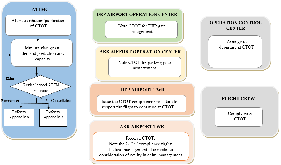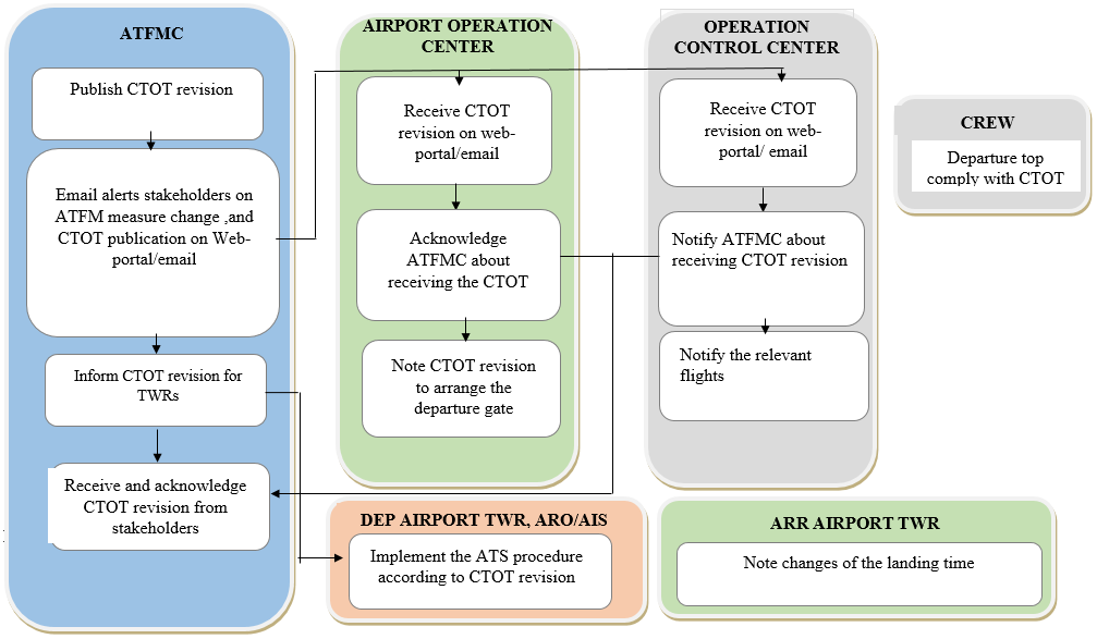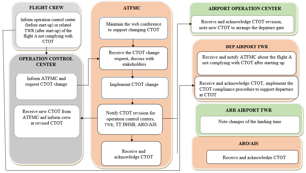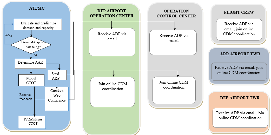 According to the common procedure in the Asia- Pacific cross-border multi-nodal ATFM Collaboration Project, stakeholders in Vietnam does the following: