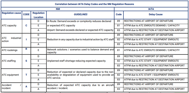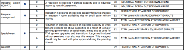 The REGCAUSE table according to EUROCONTROL is as follows: