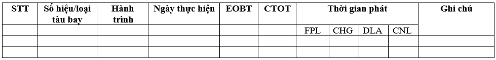 Kính gửi: Trung tâm Quản lý luồng không lưu/Tổng công ty QLBVN