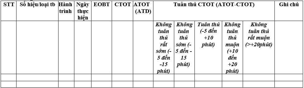 - Đánh giá việc giao, nhận và tuân thủ CTOT và hiệu quả khai thác khi tuân thủ CTOT